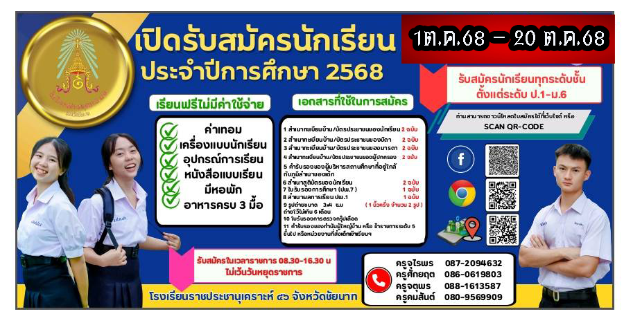 ชั้นประถมศึกษาปีที่ 1 ถึง มัธยมศึกษาปีที่ 6 ปีการศึกษา 2568